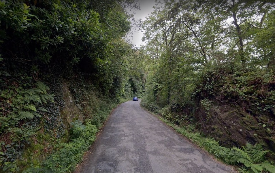 The Dungeon road as it looks today. Note high rock on one side (Source: Google Streetview)