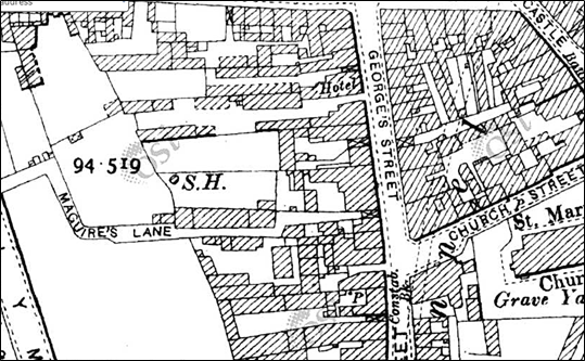 Ordinance Survey Map 1905 showing Macguire’s Lane and Georges Street.