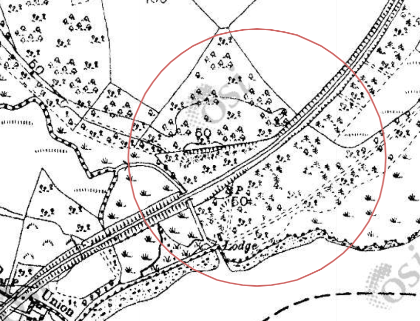 From these we know that the ambush site was on the north side of Killurin station, with an embankment and woods on either side while the reference to sandpits suggests quarry activity in the immediate area. Only one such location matches this description north of Killurin station and is located just beyond the railway bridge about a quarter of a mile as described with woods on either end. The existence of woods and sandpits at this point is obvious from OS maps which post date the ambush by only a few years.