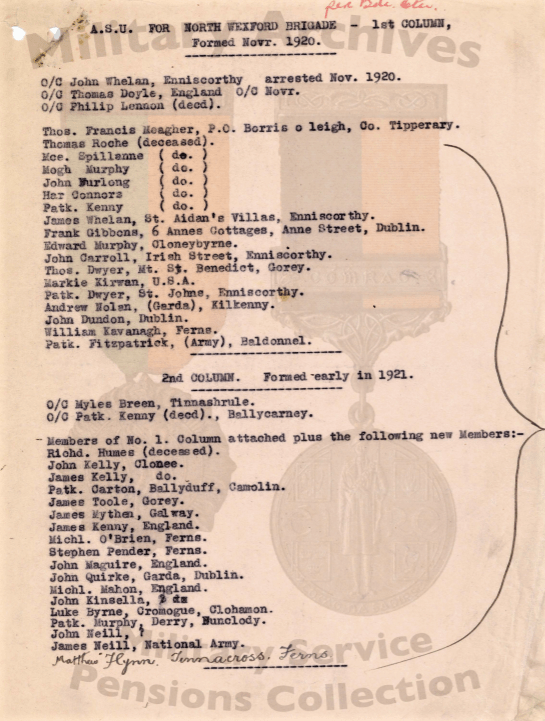 IRA Nomianl Roll, North Wexford Flying Column (Credit: Irish Military Archives)