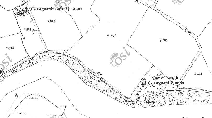 1905 ordinance survey map showing Bar of Lough coastguard station and coastguardsmen’s Quarters (the chiefs house).