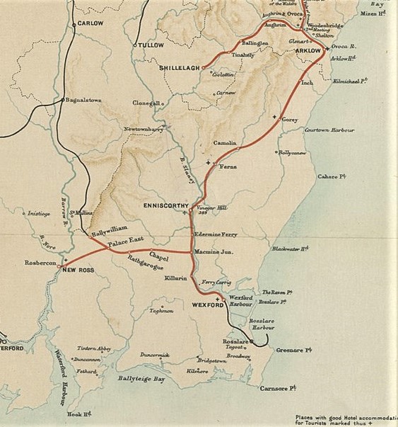 1895 map showing the Wexford’s railways. NOTE the Waterford to Rosslare line was not yet included in this edition. (Credit: British Library)